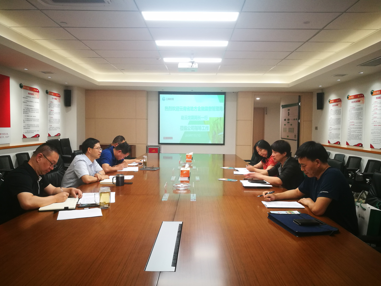 7月17日,云南省地方金融監(jiān)督管理局趙云龍副局長一行到云南省農(nóng)擔公司進行調(diào)研座談,省農(nóng)擔公司郭影董事長、杜開波總經(jīng)理、廖寅皓副總經(jīng)理及相關(guān)業(yè)務(wù)部門參加了會議。雙方圍繞公司擔保業(yè)務(wù)工作的開展情況進行座談。