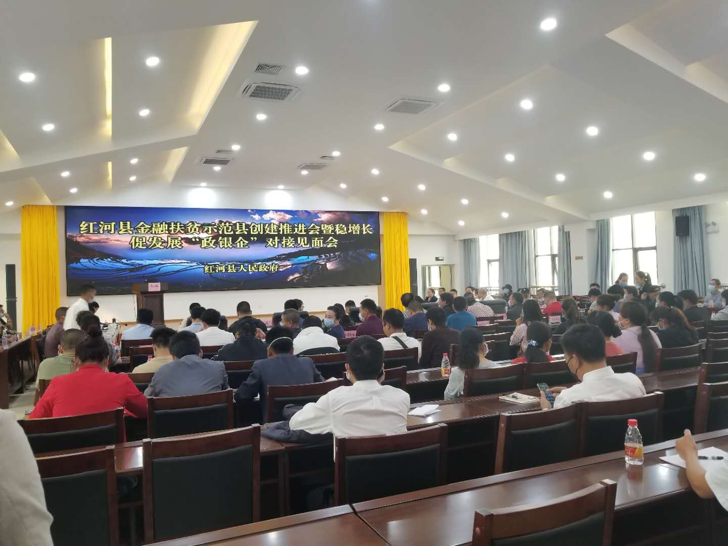 2020年3月11日,紅河辦事處業(yè)務主管姚燕同志攜項目經理范純、周金偉至紅河縣參加由紅河縣人民政府舉辦的紅河縣金融扶貧示范縣創(chuàng)建推薦會暨穩(wěn)增長促發(fā)展“政銀企”對接見面會。