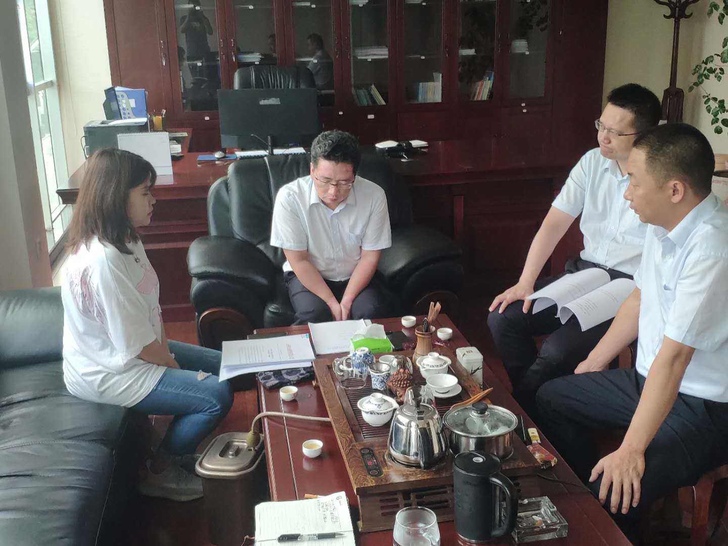 為擴充業(yè)務類型,做大業(yè)務規(guī)模,2020年7月3日,臨滄辦事處業(yè)務主管張麗琴攜項目經(jīng)理楊秋曉前往臨滄臨翔滬農(nóng)商村鎮(zhèn)銀行與董事長陳瑞金、行長楊愛飛、首席風險官嚴曉東、小微團隊主任郭楊云就業(yè)務合作進行座談。