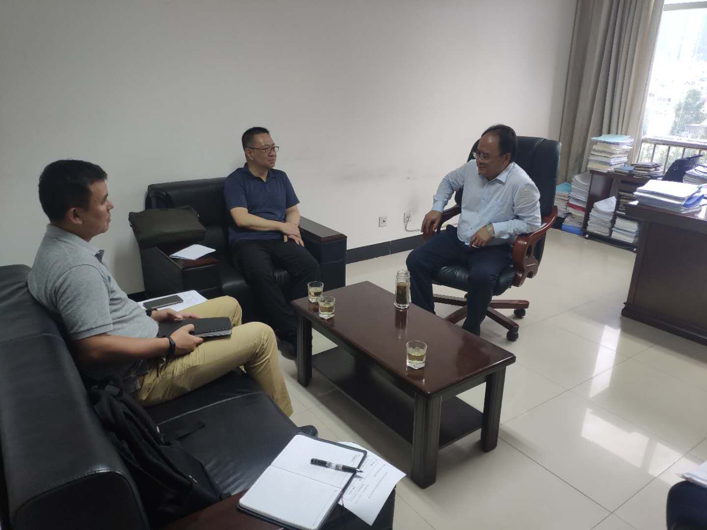 為持續(xù)鞏固政擔合作關系及跟進政府風險補償金情況,2020年8月13日,公司副總經(jīng)理廖寅皓、農(nóng)擔一部負責人寸明杰攜臨滄辦事處前往臨滄市金融辦與主任羅廷榮就辦事處業(yè)務開展情況及風險補償資金到位情況進行了交流。