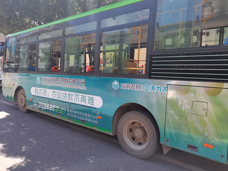 通過(guò)利用公交車人流量大,信息傳遞直觀和傳播速度快的特點(diǎn),昭通辦事處在10輛公交車兩側(cè)及車尾張貼醒目的公司宣傳廣告,以“有農(nóng)擔(dān),農(nóng)業(yè)貸款不再難”為宣傳口號(hào),向群眾最直觀地宣傳公司業(yè)務(wù)。