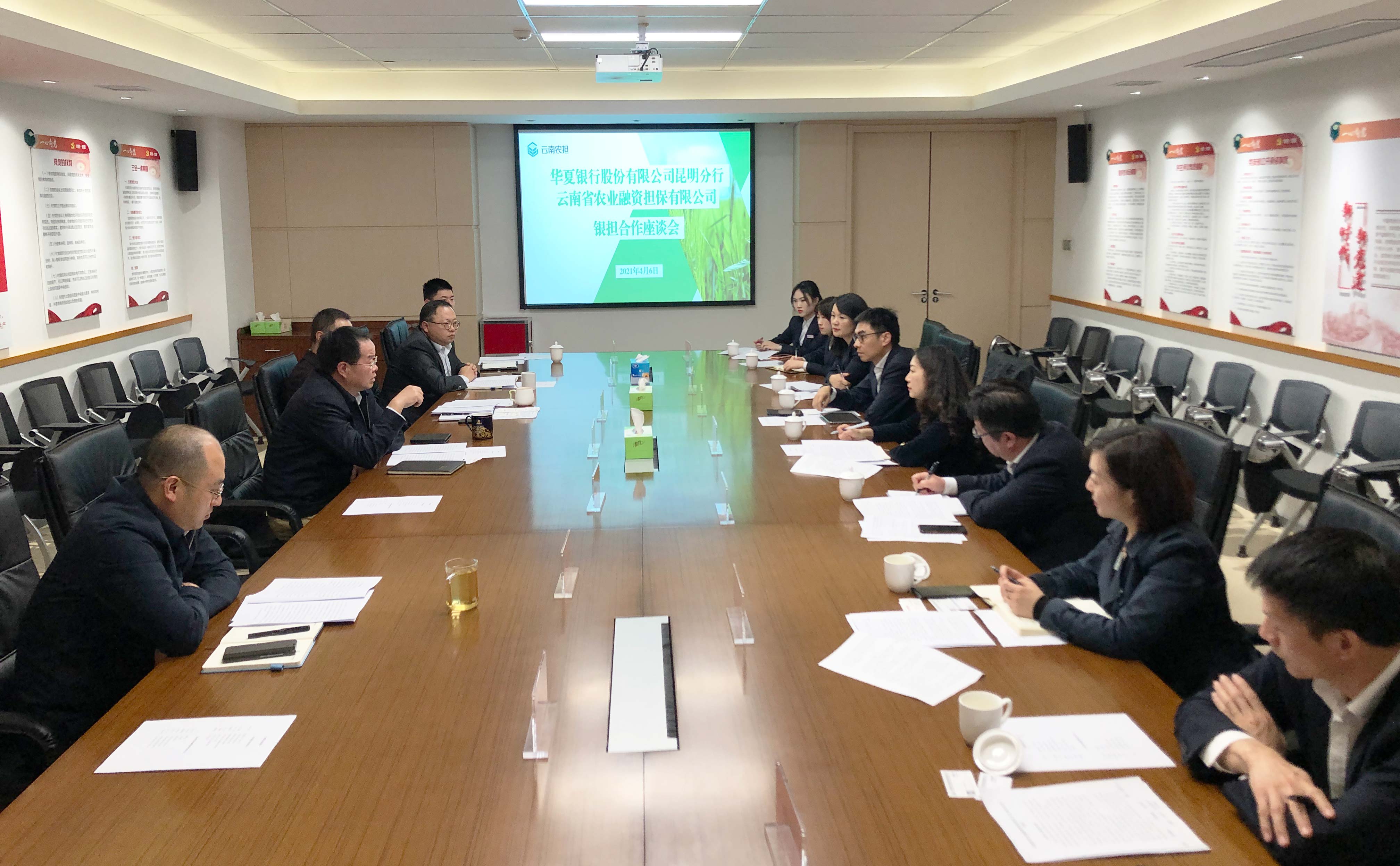 4月6日,云南農(nóng)擔與華夏銀行昆明分行召開銀擔合作座談會。華夏銀行季少青副行長攜授信審批部、普惠金融部、公司業(yè)務部、供應鏈業(yè)務金融部和金江支行負責人等參加會議。農(nóng)擔公司董事長杜開波、總經(jīng)理李世偉、副總經(jīng)理廖寅皓,業(yè)務發(fā)展部、風險控制部、戰(zhàn)略發(fā)展部和昆明專營中心負責人參會。