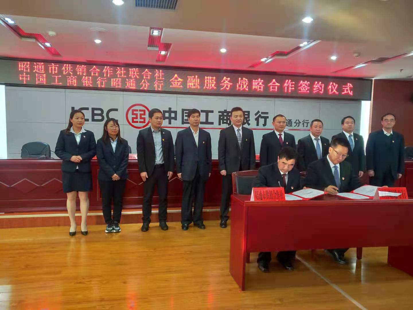 2021年4月9日下午昭通辦事處負(fù)責(zé)人劉明晨受邀參加昭通市供銷(xiāo)合作社聯(lián)合社與中國(guó)工商銀行股份有限公司昭通分行簽署戰(zhàn)略合作協(xié)議儀式。出席儀式的有:昭通市政府黨組成員黃生斌,昭通市金融辦主任童友罡、昭通市供銷(xiāo)合作社主任趙聲滿及相關(guān)領(lǐng)導(dǎo)、工行昭通分行行長(zhǎng)王軍及各部室主要負(fù)責(zé)人。