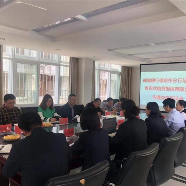 2月19日,農(nóng)擔(dān)公司副總經(jīng)理廖寅皓一行攜德宏辦事處人員至郵儲銀行德宏州分行進行交流座談。