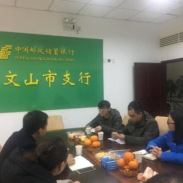 文山辦事處全體員工受邀到中國郵政儲蓄銀行文山市支行進行座談